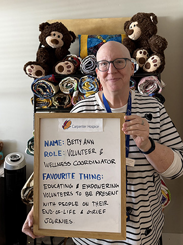 What started as a few donations of teddy bears quickly grew into a long-standing commitment. Brenda now lovingly sources, repairs, and donates hundreds of teddy bears each year, soft, huggable companions that bring comfort to hospice residents and, eventually, their grieving families.